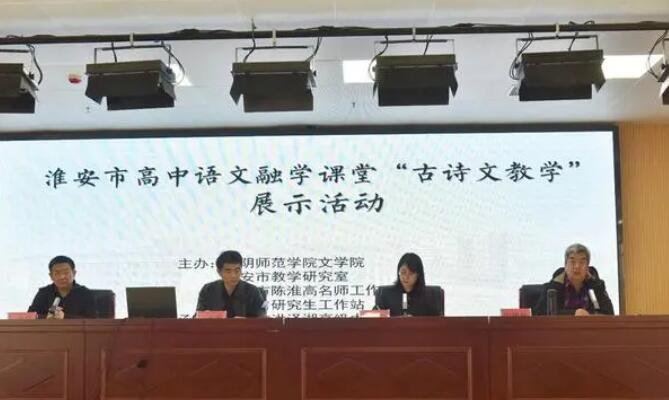 洪澤湖畔,春意融融。近日,省內外多位專家、名師及淮安、鹽城、連雲港部分語文教師齊聚淮安市洪澤湖高級中學,共同研討「古詩文」教育,探究教師專業化成長之路。本次淮安市融學講堂「古詩文教育」展現活動由淮陰師院文學院、淮安市教育研究室、淮安市陳淮高名師工作室、江蘇省研究生工作站主辦,由淮安市洪澤湖高級中學承辦。